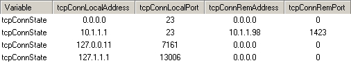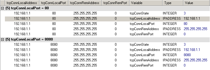 1.3.6.1.2.1.6.13.1.4.192.168.1.1.8080.255.255.255.255.0 IPADDRESS 255.255.255.255