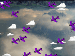 ![]() Purple Jet planes and Cumulous Clouds zooooom across the screen. |